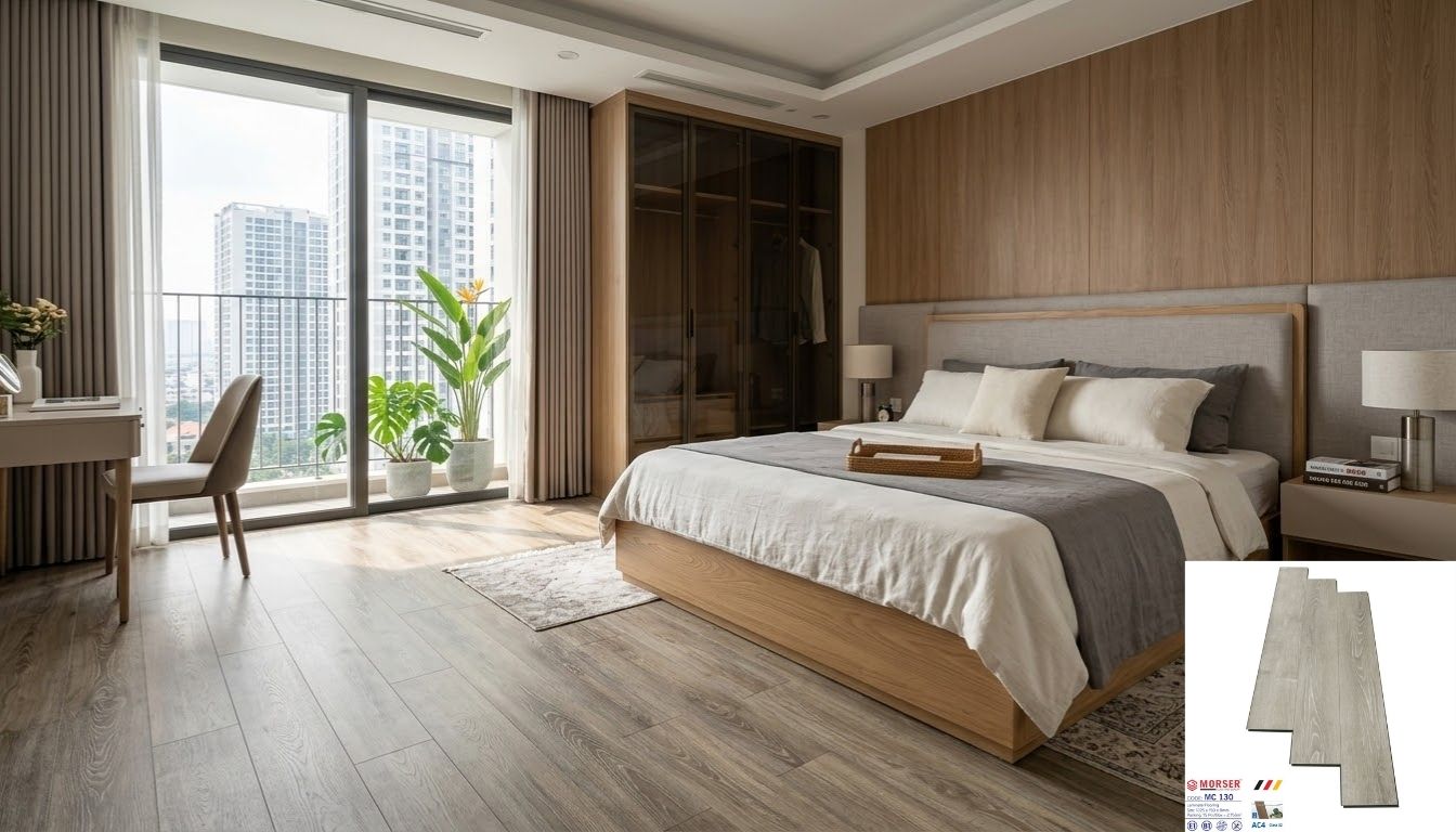 Hình ảnh hoàn thiện sàn gỗ Morser MC 130 cho phòng ngủ