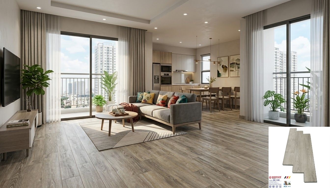 Hình ảnh hoàn thiện sàn gỗ Morser MC 136 cho chung cư
