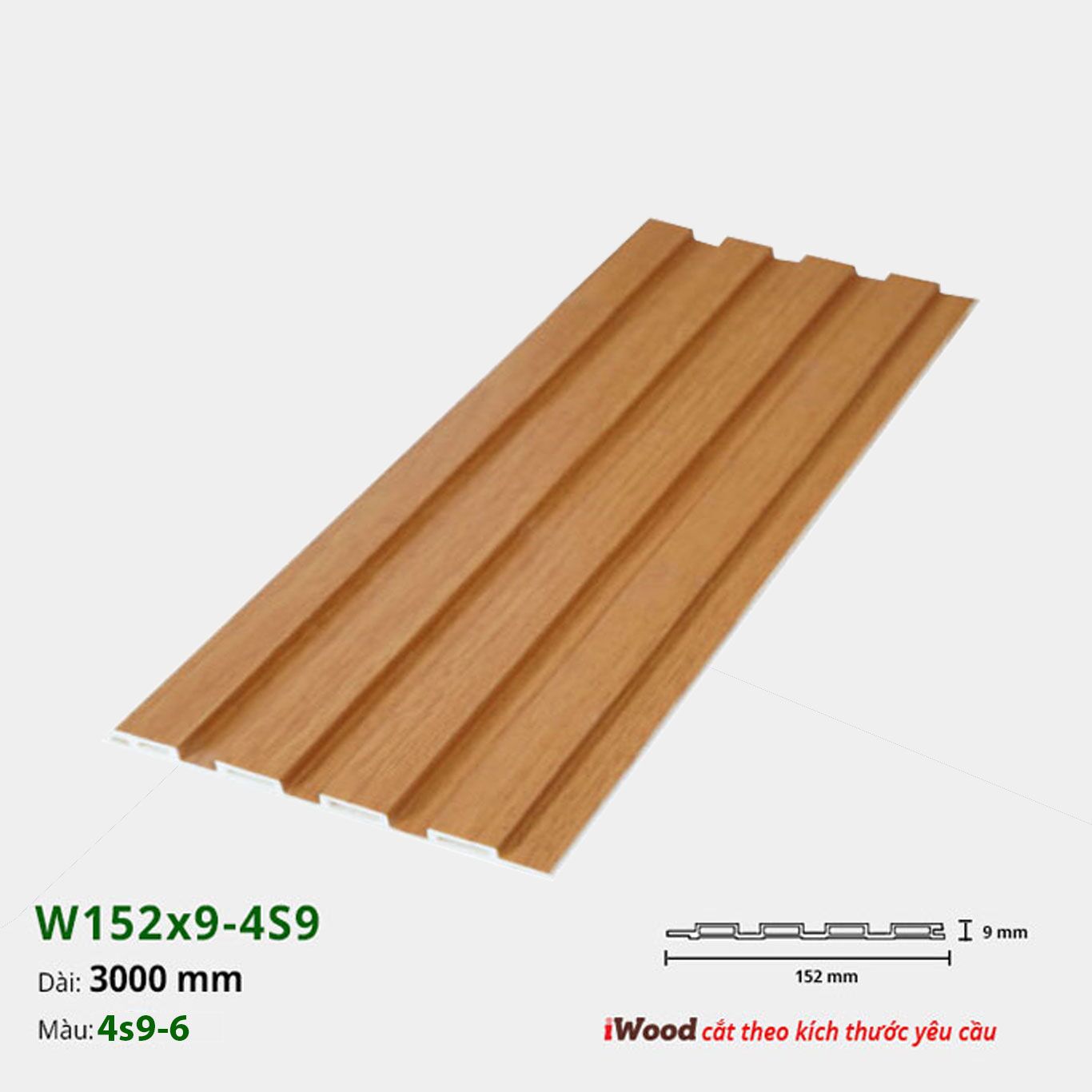 Lam nhựa giả gỗ iWood 4s9 có 4 sóng, quy cách dày 9x152x3000 có nhiều màu vân gỗ giống vân gỗ tự nhiên, có màu sơn theo yêu cầu.