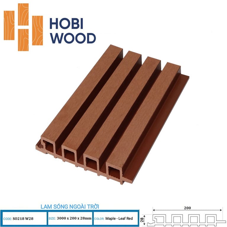 - Lam sóng ngoài trời Hobiwood màu đỏ có độ bền cao, chịu được thời tiết khắc nghiệt, không bị cong vênh, mối mọt hay phai màu theo thời gian.