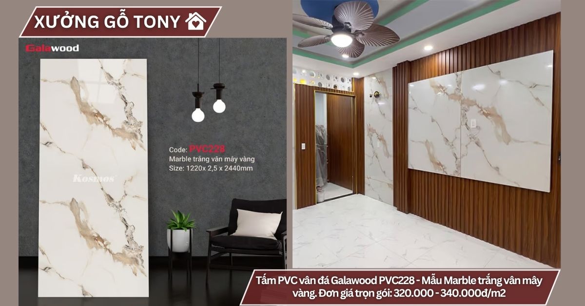 - Tấm ốp PVC vân mây Galawood PVC228 chính hãng