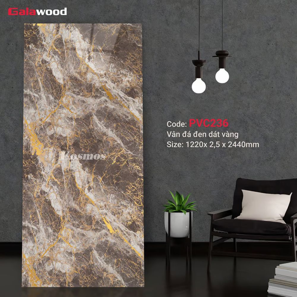 - Tấm ốp PVC vân đá đen dát vàng PVC236 chính hãng Galawood