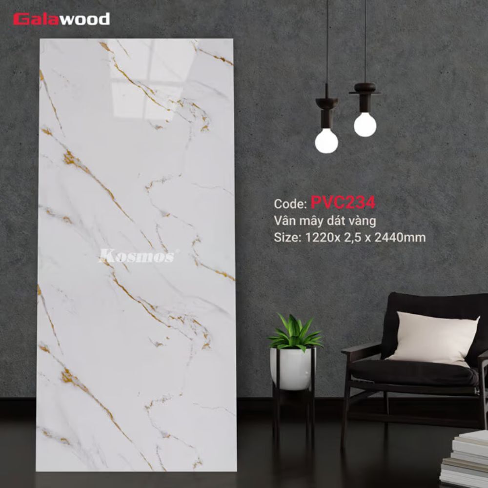 - Tấm ốp PVC vân mây dát vàng PVC234 chính hãng Galawood