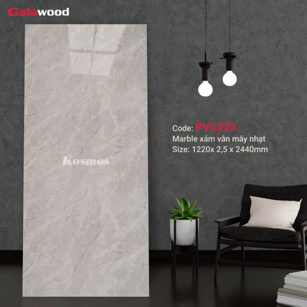 - Tấm PVC giả đá xám vân mây nhạt PVC225 chính hãng Galawood