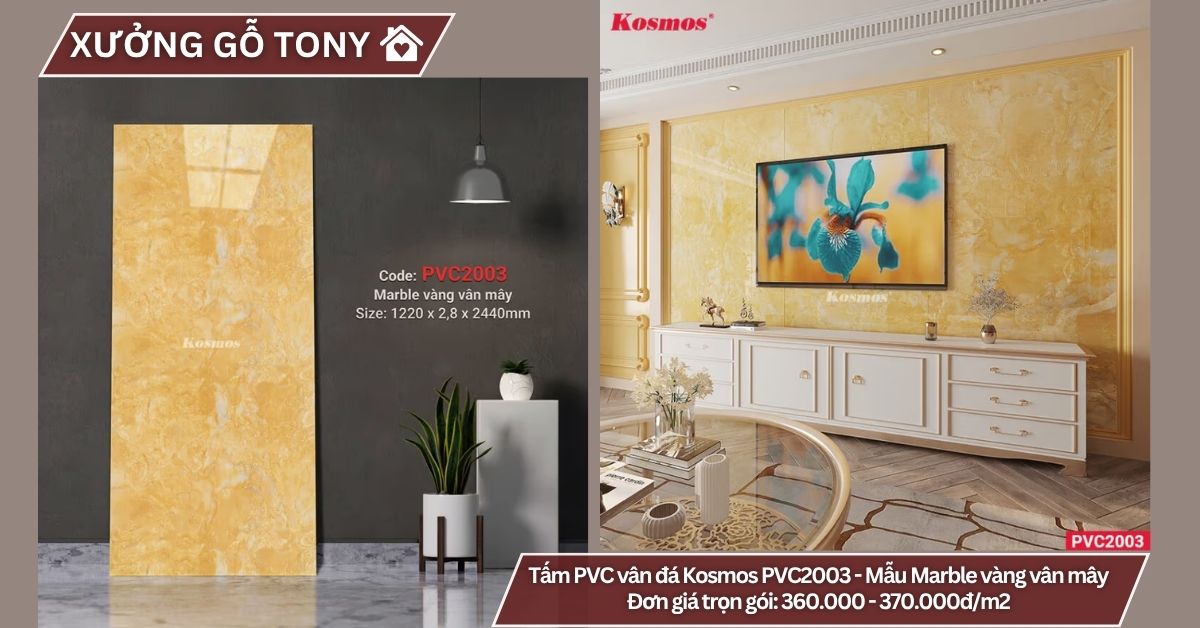 🏢 Ốp Tường PVC Vân Đá Marble Vàng Vân Mây Kosmos PVC2003