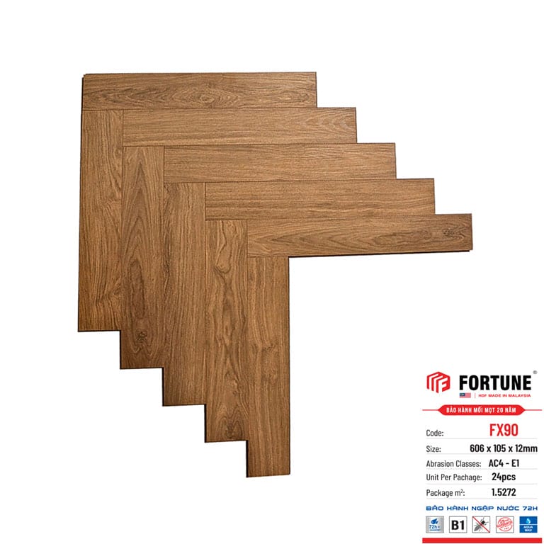 Sàn gỗ Fortune xương cá 12mm được bảo hành 25 năm với nhà ở và 5 năm với khu trung tâm thương mại, vì thế quý vị có thể hoàn toàn yên tâm khi sử dụng.