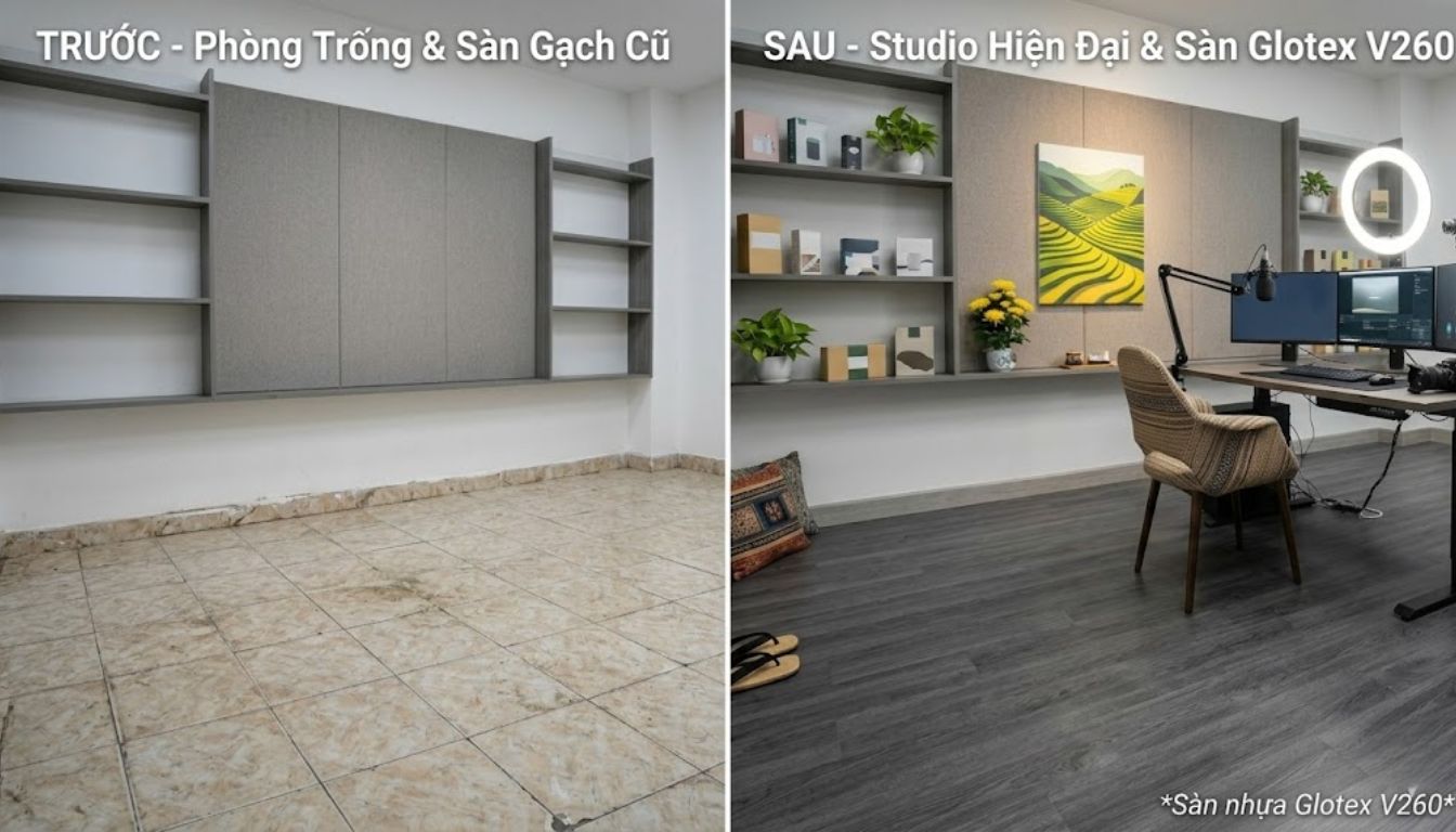 Sàn nhà xuống cấp, ố vàng, mất thẩm mỹ mà chưa biết xử lý thế nào? Mỗi lần nhìn xuống lại thấy ngán – vừa xấu, vừa trơn, vừa mất vệ sinh. Cải tạo thì sợ tốn kém, đập phá ồn ào, mà ở nhà thuê lại càng không dám động vào.