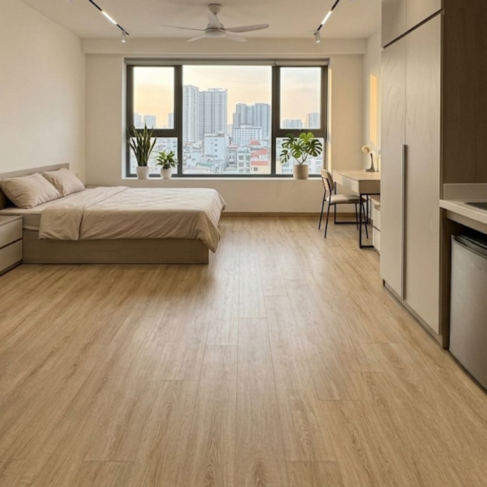 - 🪵 Màu gỗ vàng kem tự nhiên – ấm áp, sang trọng, phù hợp căn hộ dịch vụ, homestay, studio cao cấp