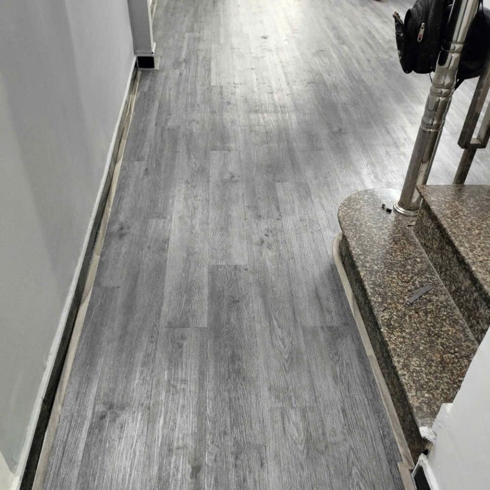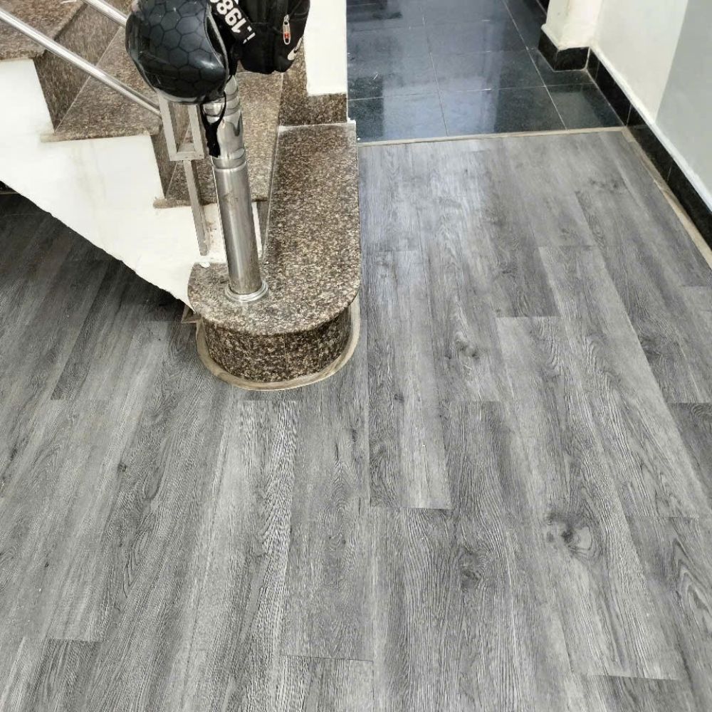 Sàn nhựa màu gỗ xám khói thể hiện: