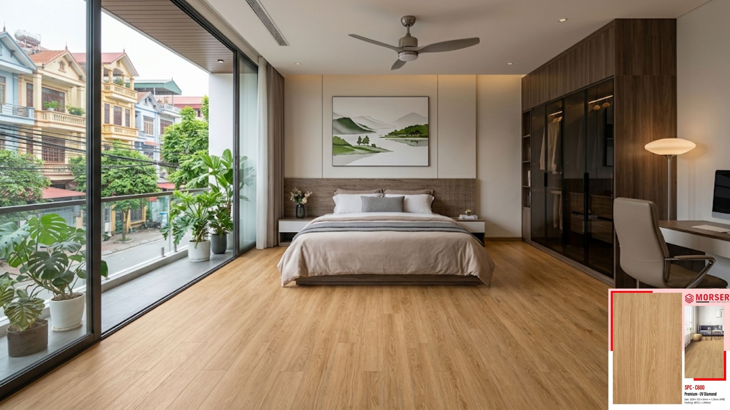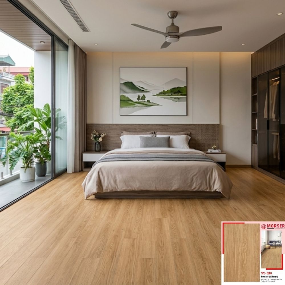 Sàn Morser C600 là dòng sàn nhựa giả gỗ cao cấp. Sàn được sản xuất từ chất liệu nhựa SPC thân thiện với môi trường, độ bền cao. Được sử dụng lát sàn cho phòng ngủ, phòng khách, phòng ăn, phòng sinh hoạt. Ngoài ra, còn được sử dụng nhiều cho văn phòng, các shop,… do có giá trị thẩm mỹ và độ bền cao.