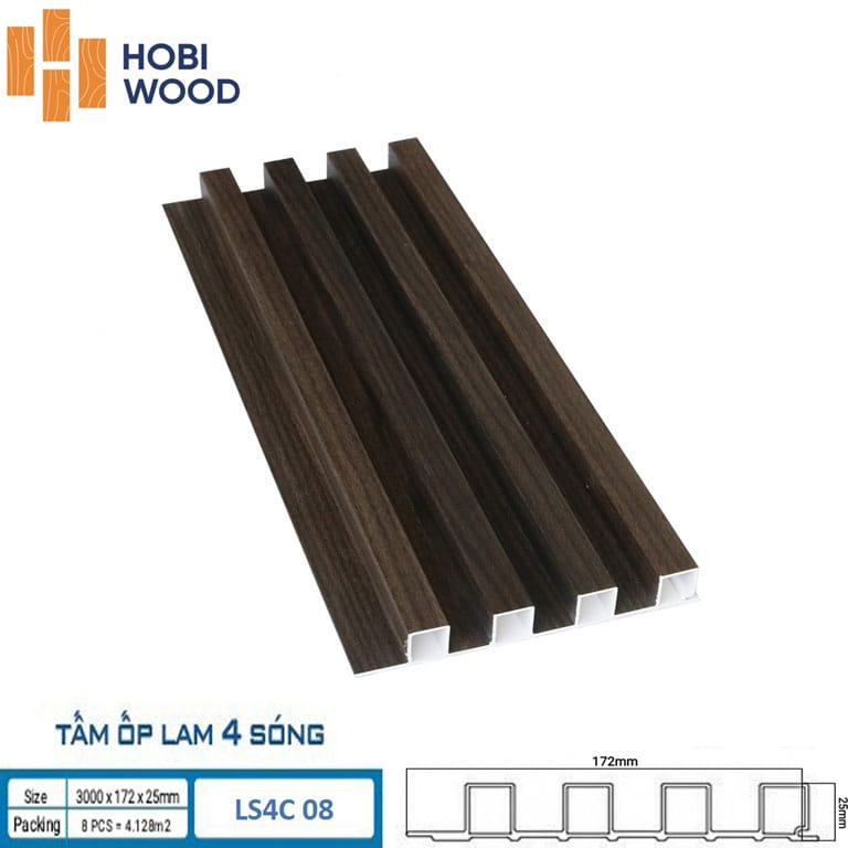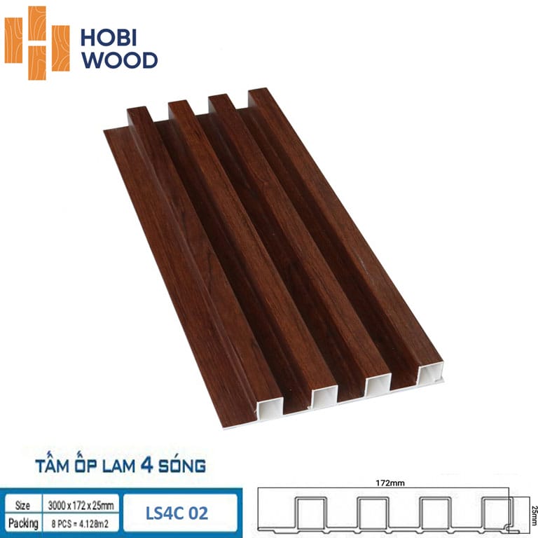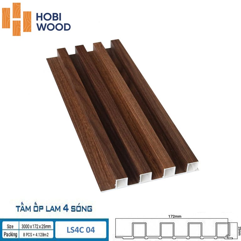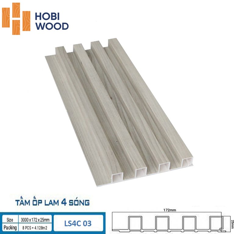 Bạn đang tìm kiếm một giải pháp trang trí nội thất vừa đẹp mắt vừa bền bỉ? Tấm Nhựa ốp tường Hobiwood LS4C 02 chính là lựa chọn lý tưởng dành cho bạn. Với thiết kế 4 sóng dày 25mm, chiều ngang 172mm và chiều dài 3000mm, sản phẩm mang đến sự sang trọng và hiện đại cho mọi không gian.