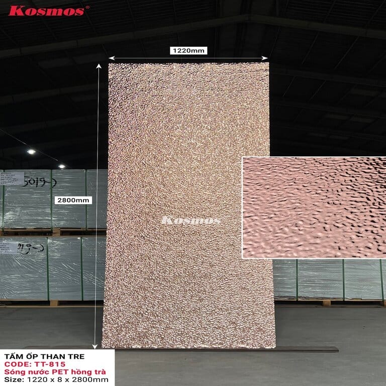 Tấm ốp sợi than tre Kosmos TT-815 có thiết kế sóng nước PET hồng trà với các đặc điểm nổi bật:
