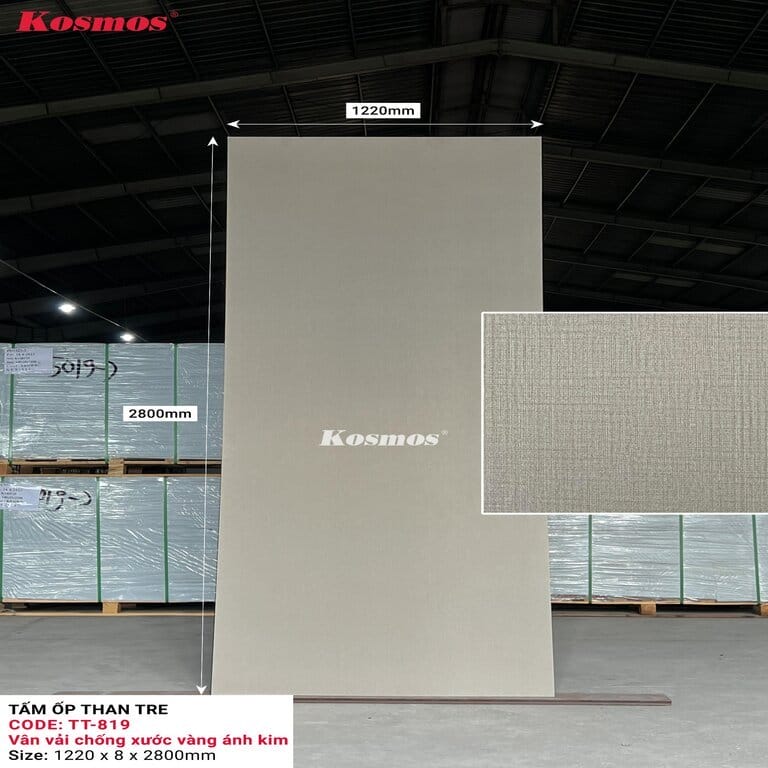 Tấm Ốp Sợi Than Tre Kosmos TT-819 có vân vải chống xước vàng ánh kim với các đặc điểm nổi bật: