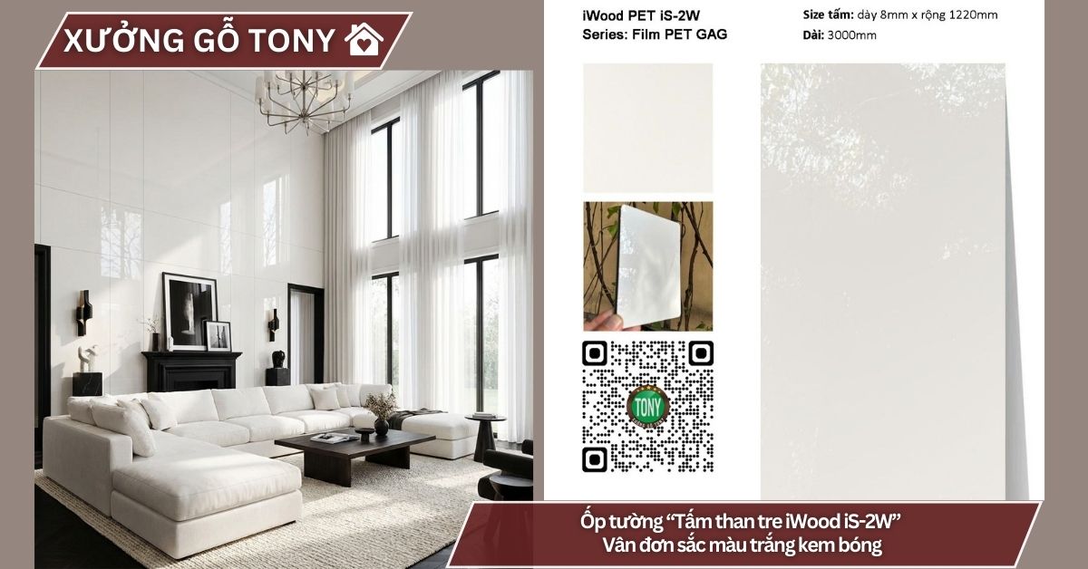 Tấm ốp than tre đơn sắc PET iS-2W – sản phẩm độc đáo từ thương hiệu iWood – chính là giải pháp hoàn hảo dành cho bạn! Với bề mặt PET trắng kem bóng ấm áp, sản phẩm mang đến vẻ đẹp warm luxury, cozy và rất inviting, tạo nên không gian sống comfortable, homey và đầy cảm hứng.