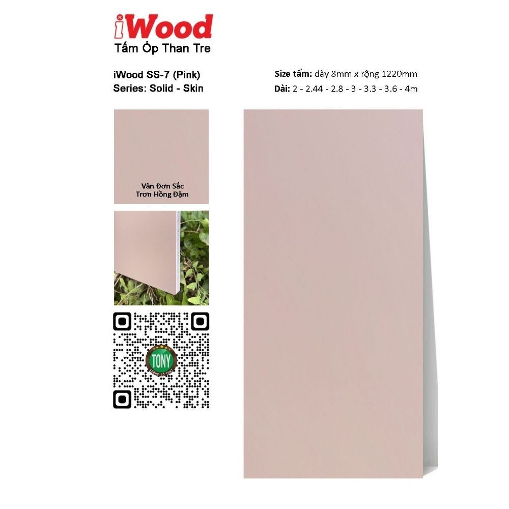 Tấm ốp than tre đơn sắc SS-7 – sản phẩm độc đáo từ thương hiệu iWood – chính là giải pháp hoàn hảo dành cho bạn! Với bề mặt vân đơn sắc trơn màu hồng đậm quyến rũ, sản phẩm mang đến vẻ đẹp nữ tính, lãng mạn và rất ấn tượng, tạo nên không gian sống độc đáo, cá tính và đầy cảm hứng.