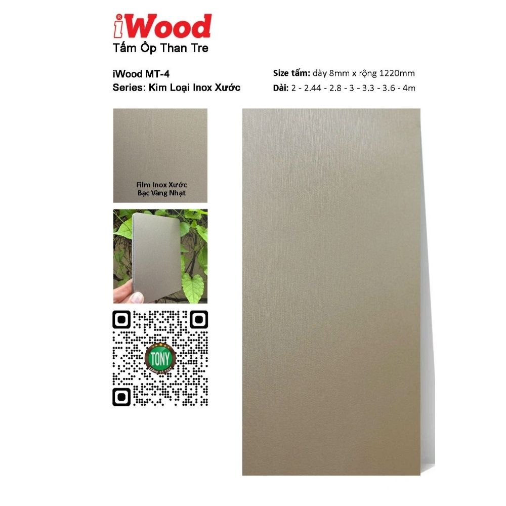 Tấm ốp than tre vân Inox MT-4 iWood – Màu bạc vàng nhạt