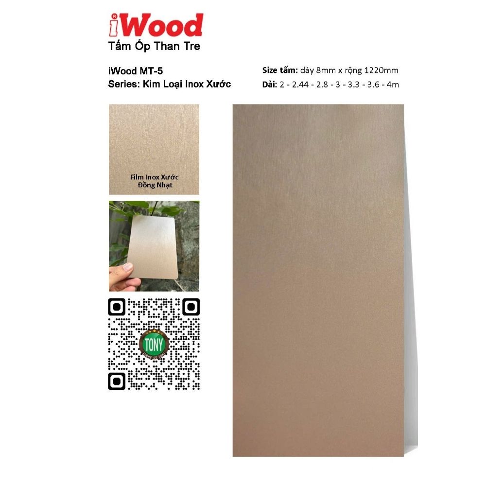 Tấm ốp than tre vân Inox MT-5 iWood – Màu đồng nhạt
