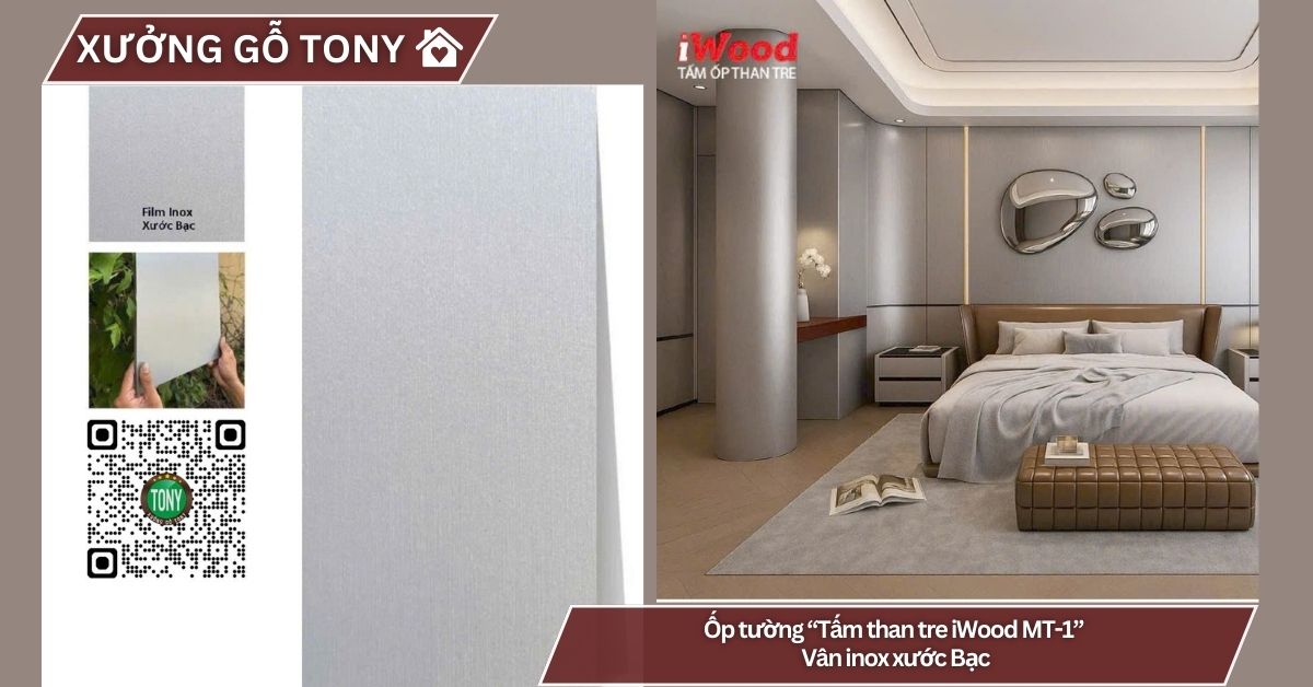 Tấm ốp than tre vân Inox xước MT-1 – sản phẩm độc đáo từ thương hiệu iWood – chính là giải pháp hoàn hảo dành cho bạn! Với bề mặt vân Inox xước màu bạc sang trọng, sản phẩm mang đến vẻ đẹp hiện đại, đẳng cấp và rất ấn tượng, tạo nên không gian sống chuyên nghiệp, tinh tế và đầy cảm hứng.
