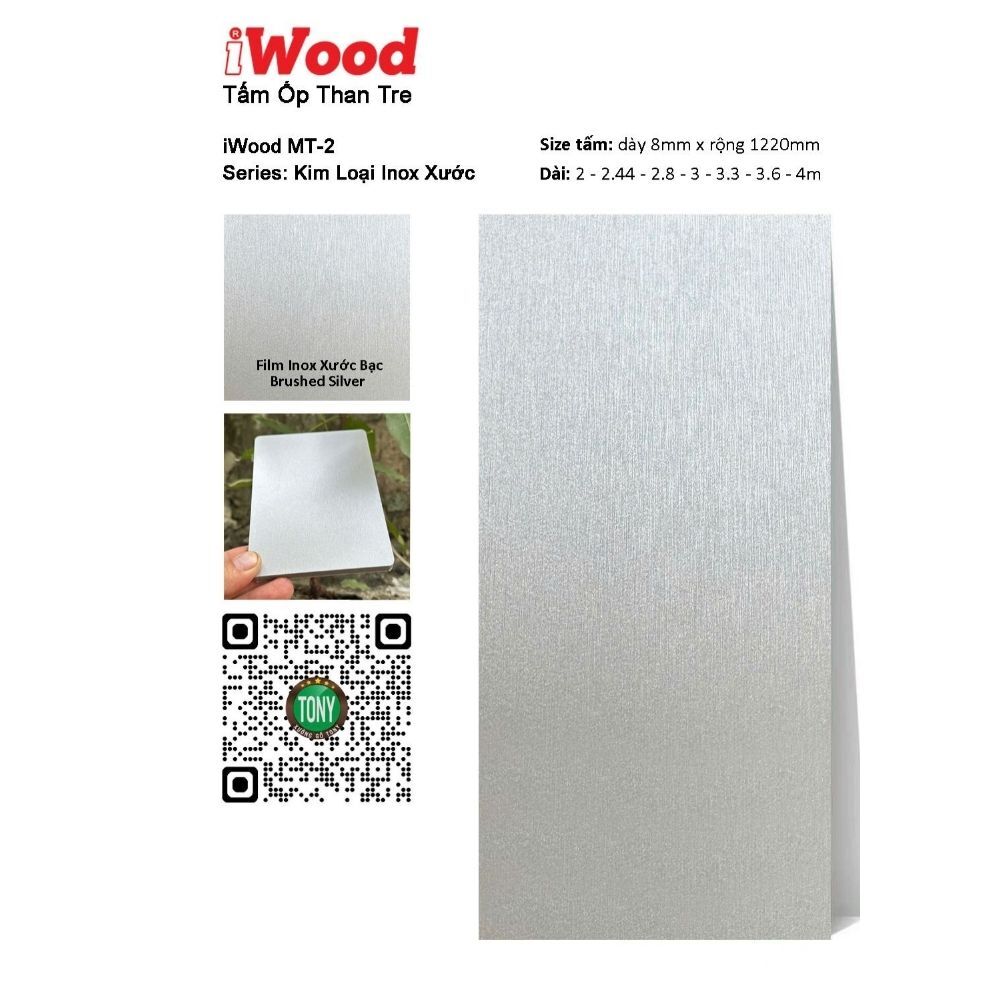Tấm ốp than tre vân Inox xước MT-2 – sản phẩm độc đáo từ thương hiệu iWood – chính là giải pháp hoàn hảo dành cho bạn! Với bề mặt vân Inox xước Brushed Silver sang trọng, sản phẩm mang đến vẻ đẹp kim loại tinh tế, đẳng cấp và rất ấn tượng, tạo nên không gian sống chuyên nghiệp, hiện đại và đầy cảm hứng.