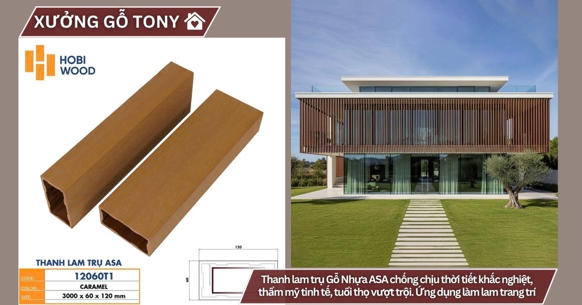 • Ứng dụng: Lam trang trí mặt tiền, hàng rào, dàn pergola, lan can, tay vịn, khung giàn hoa, lam chắn nắng ban công…