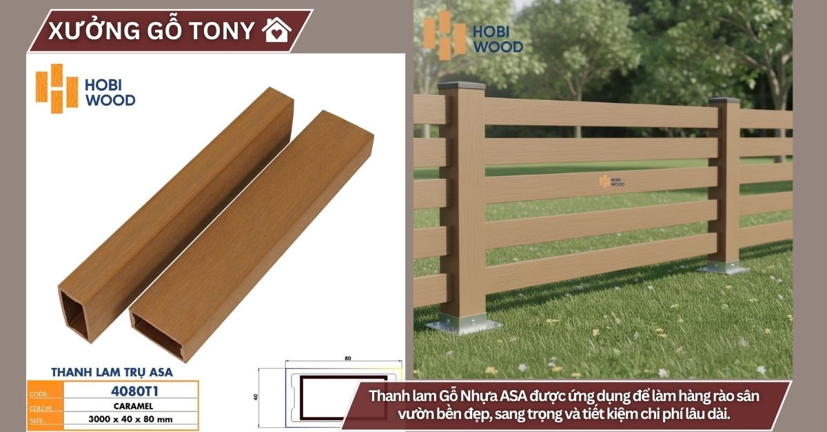 Nếu bạn đang muốn làm lam trang trí mặt tiền, hàng rào, giàn lam sân vườn, dàn pergola vừa đẹp, vừa bền, vừa tiết kiệm chi phí bảo trì, Thanh lam trụ gỗ nhựa ASA 4080T1 chính là lựa chọn tối ưu. Sản phẩm mang lại vẻ đẹp hiện đại, sang trọng, độ bền vượt trội, thi công linh hoạt và ứng dụng đa dạng cho mọi không gian ngoại thất.