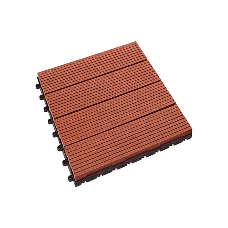 Vỉ gỗ nhựa ngoài trời Hobiwood VS màu red vân sọc có kích thước 300mm x 300mm x 22,5mm.